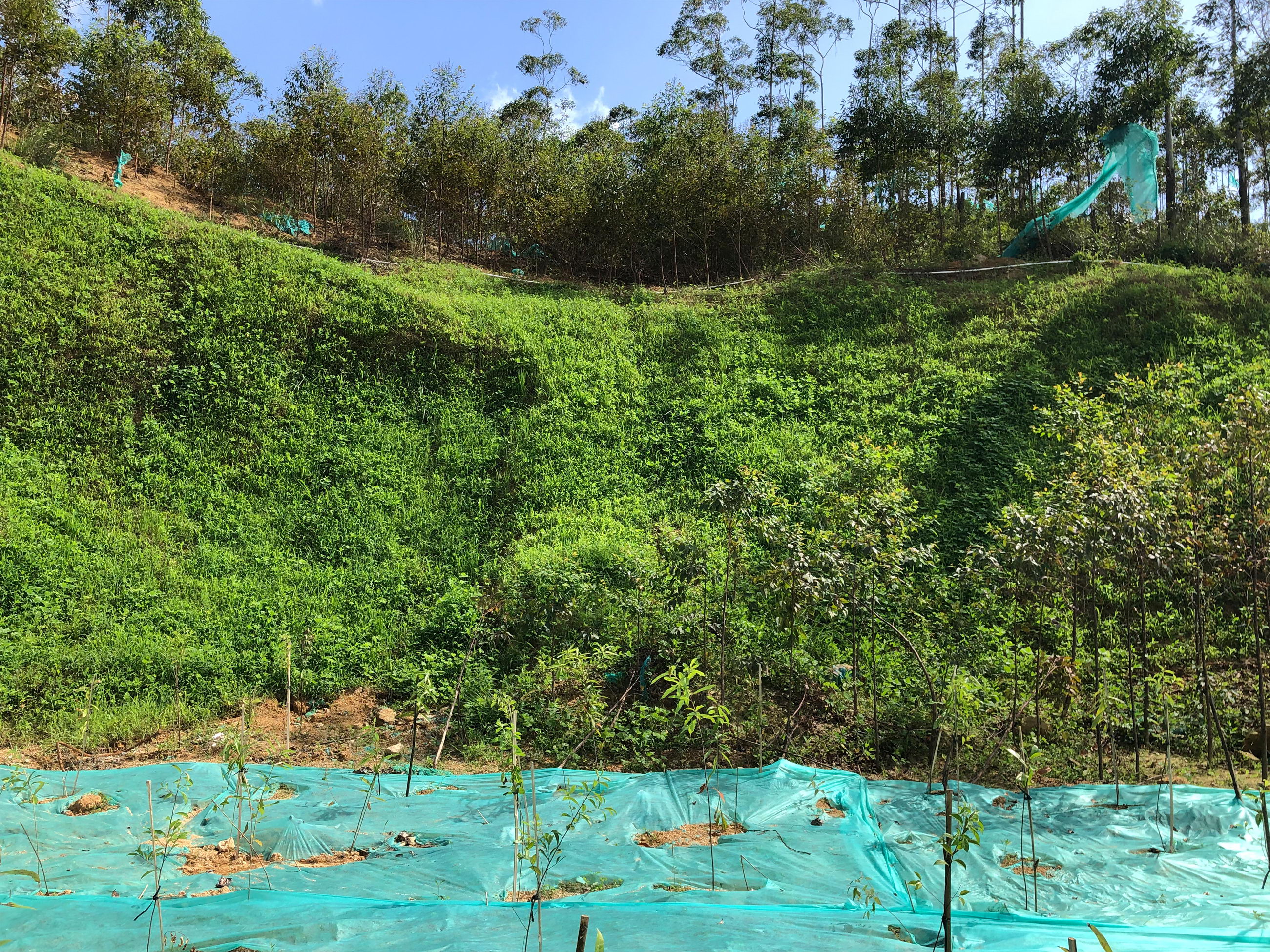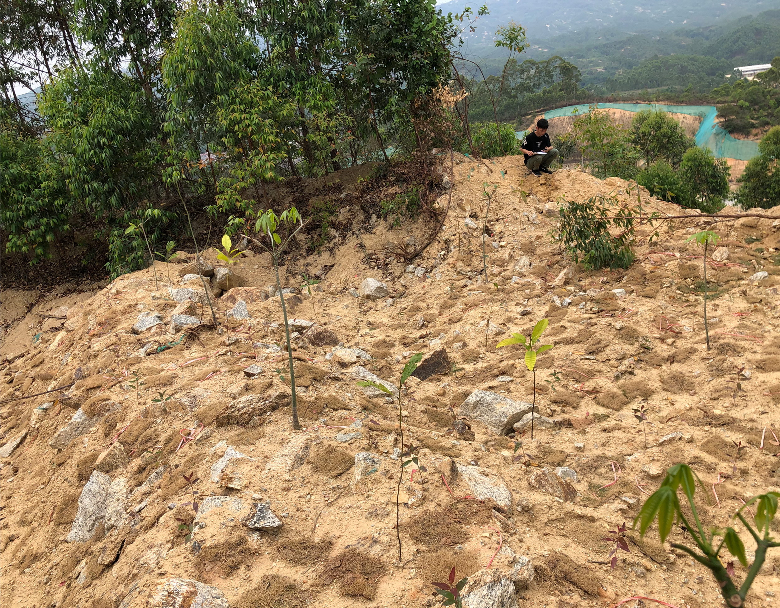 截止2022年7月18日,本項(xiàng)目共完成種植喬木苗木13000株,其中木荷5500株,鐵冬青5500株;大葉櫟2000株;人工撒播15000平方米。完成立面掛網(wǎng)木纖維噴播14000平方米,已完成治理面積合計(jì)約28000平方米。